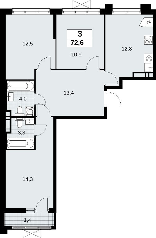 Общая: 72,6 м2